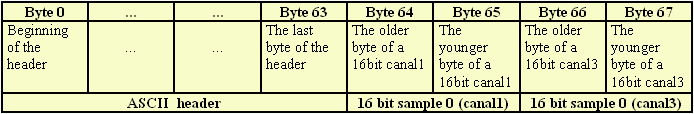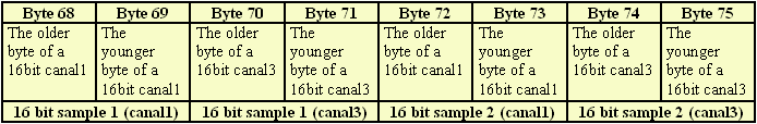 • Every sample has 16 bit length (the older byte + the younger byte)